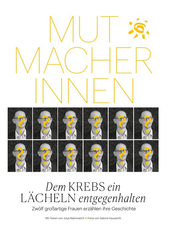 Umgesetzt wird dies mit s/w Portrait-Fotos der Künstlerin Sabine Hauswirth und Text von Ö1 Ikone Mirjam Jessa. Die 12 „Mutmacher:innen“ stehen stellvertretend für tausende Männer und Frauen, die jährlich an Krebs erkranken.